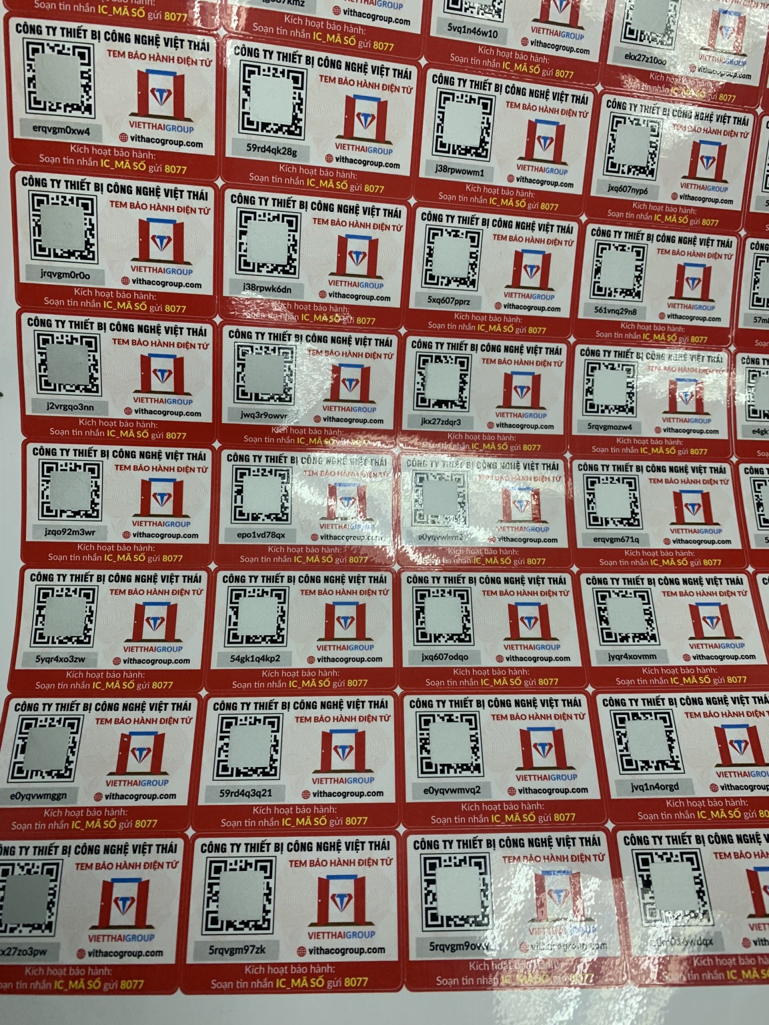 Quý khách vui lòng cào lớp phủ trên mã QR. Sau khi cào lớp phủ trên mã QR quý khách có thể dùng cách quét mã QR trên Zalo hoặc quý khách có thể quét bằng cách bật máy ảnh trên điện thoại thông minh. Sau khi quét xong quý khách vui lòng điền thông tin của mình vào. Dưới mỗi mã QR quý khách sẽ được cấp 1 mã khách hàng. Quý khách vui lòng soạn tin theo cú pháp: IC dấu cách Mã khách hàng và gửi tới 8077. Đội ngũ chăm sóc khách hàng bên công ty sẽ lưu thông tin của quý khách và sẽ bảo hành sản phẩm của quý khách.